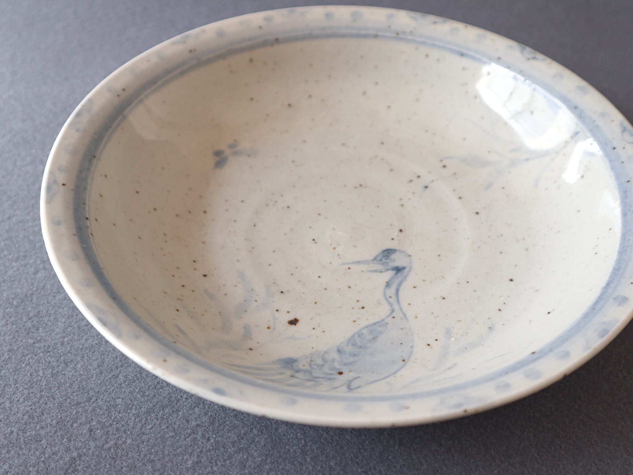 薄い呉須と鉄粉の黒点がちらちらと現れている素地。